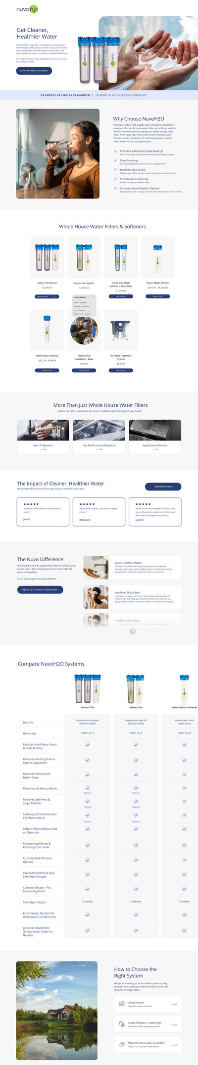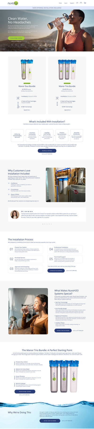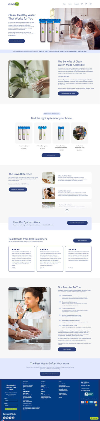 One of NuvoH2O’s biggest challenges was low website conversion. The buying journey was unclear, making it difficult for customers to choose the right system. We restructured the experience around a guided quiz that asked questions about home size and filter needs, streamlining product selection and improving the overall path to purchase.