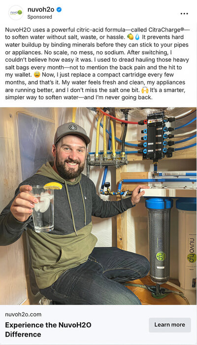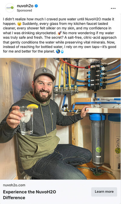 As the creative strategist for NuvoH2O, I led the brand’s creative direction and oversaw execution across paid and organic social, UGC, email, website, and wholesale print materials.